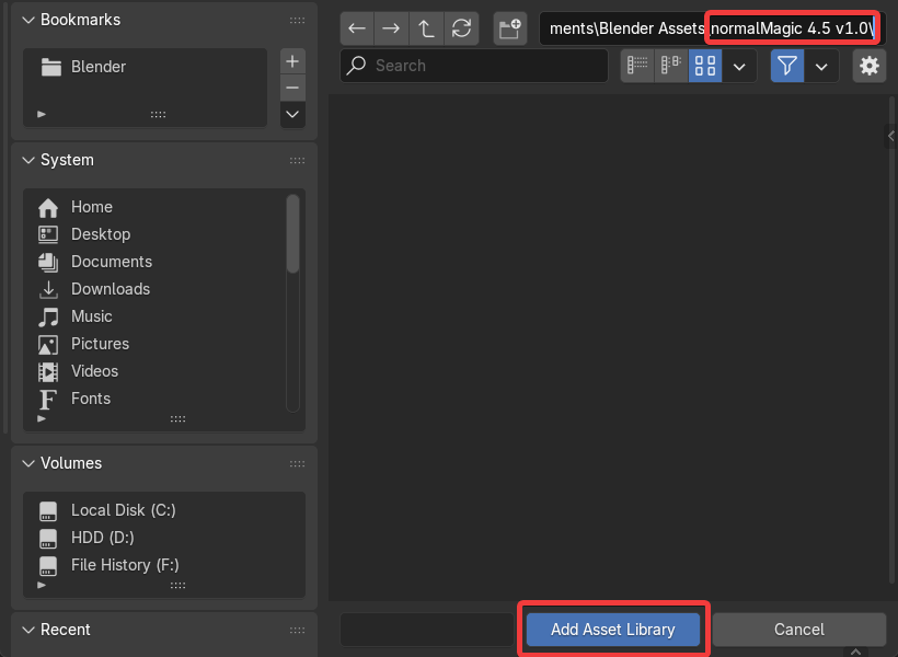 5. Navigate to the unzipped folder and press Add Asset Library. install_2