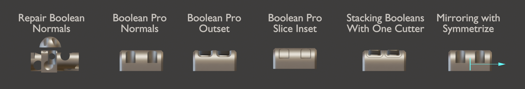 Examples for various uses of Boolean Pro and Repair Boolean Normals.