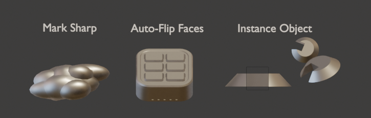 Examples for "other" modifiers in use: Mark Sharp, Auto-Flip Faces, Instance Object.