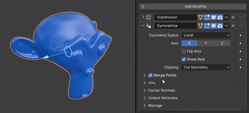 Mirrors a mesh on a single axis. Similar to Blender's Mirror Modifier but with the following improvements: